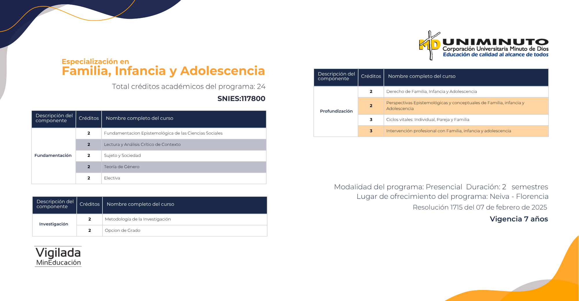 "La Corporación Universitaria Minuto de Dios (UNIMINUTO) Rectoría Centro Sur ofrece la Especialización en Familia, Infancia y Adolescencia como un programa innovador, con un enfoque praxeológico y social que permite a los profesionales desarrollar una formación integral, basada en la reflexión y la acción. Este programa se distingue por su compromiso con la educación situada y las pedagogías activas, facilitando un aprendizaje aplicado que responde a los retos del contexto regional y nacional.
